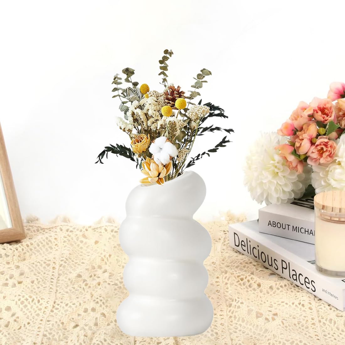 - 【Modern Minimalist Design】White flower vases has an elegant sculptural and modern look, the spiral design makes it unique and stylish. Great choice for modern rustic farmhouse home decor.