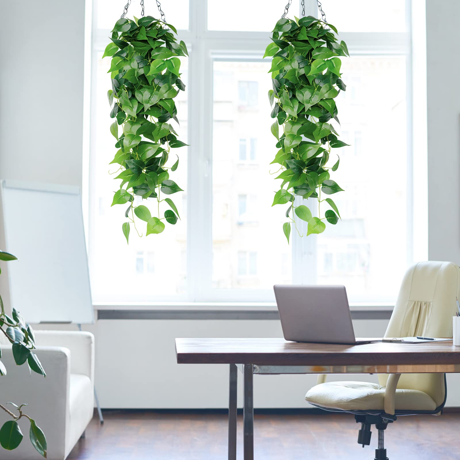 - 【NO MAINTENANC REQUIRED】 – Artificial green hanging plant with realistic looking will not wither, not fade, not attract mosquitoes, can be washed, no need regular watering, trimming and other time-consuming maintenance, it keeps green and prefect state all year around for your enjoy.