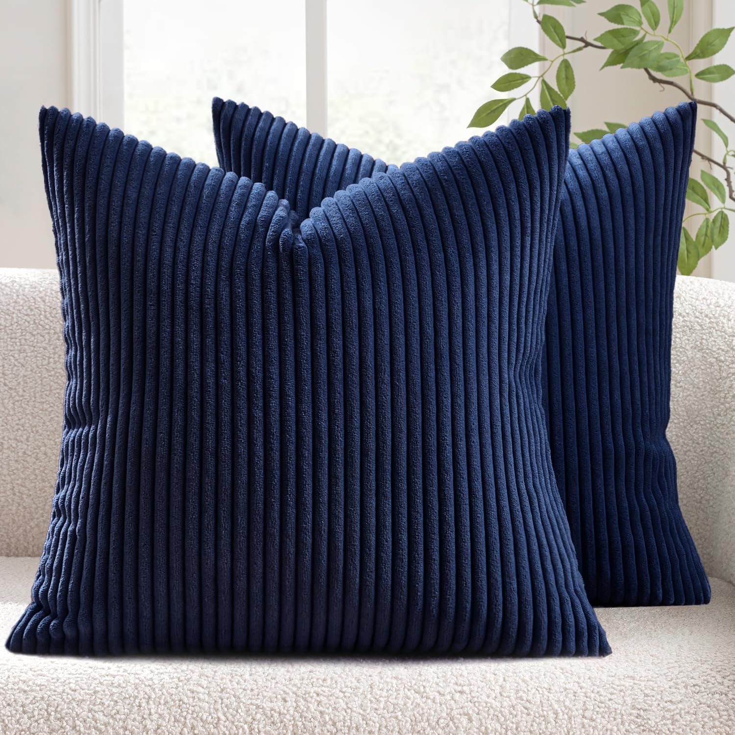 Corduroy Soft Soild Square Throw Pillow Covers, 18×18, 2packs