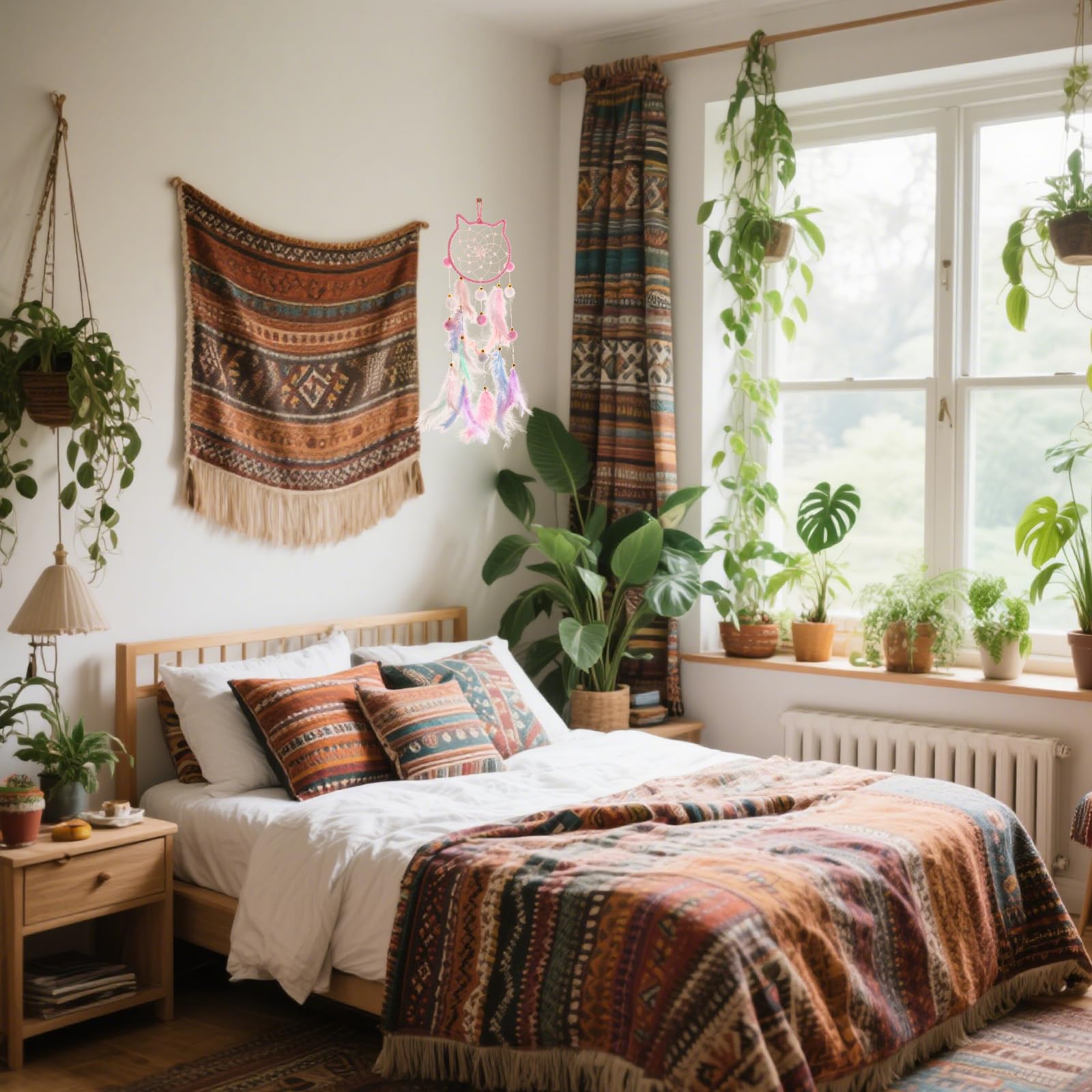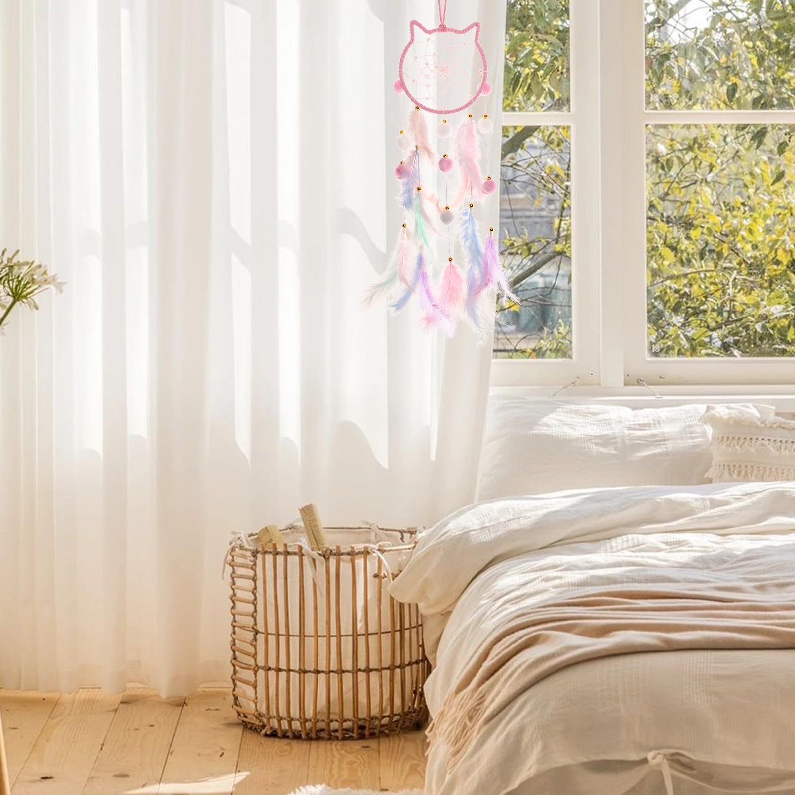 - [Multi-functional decoration] Our dreamcatcher is especially convenient to hang, you can hang it on any scene, such as the window, living room, bedroom wall or children’s room, you can also use it as a wedding party decoration, can bring warmth to your room