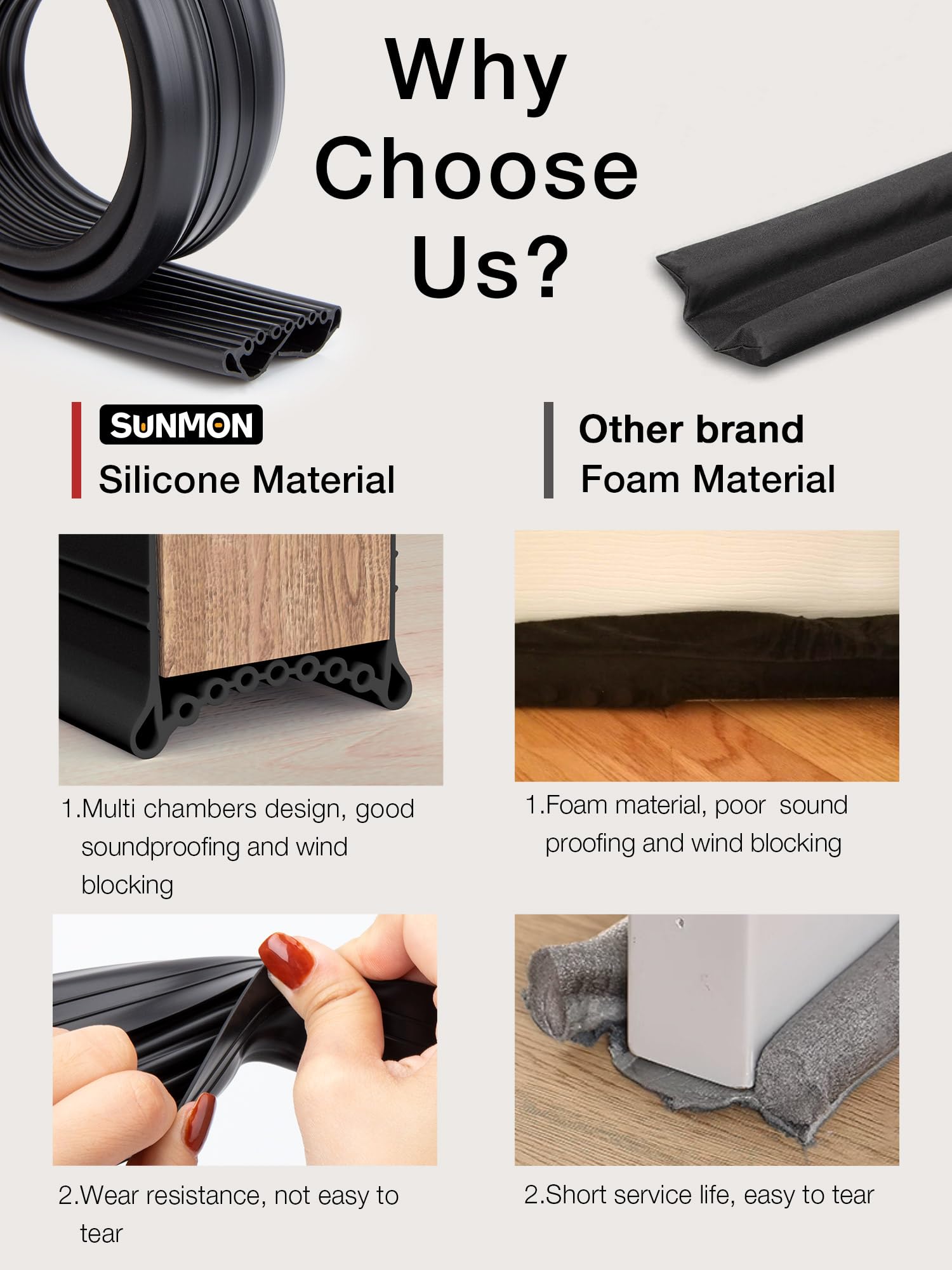 • [Upgraded Silicone Material] – Upgrade to our door draft stopper made from premium silicone material, enjoy better wind-blocking and noise-reducing capabilities compared to foam or rubber door bottom seal strip, experience enhanced flexibility and extended lifespan