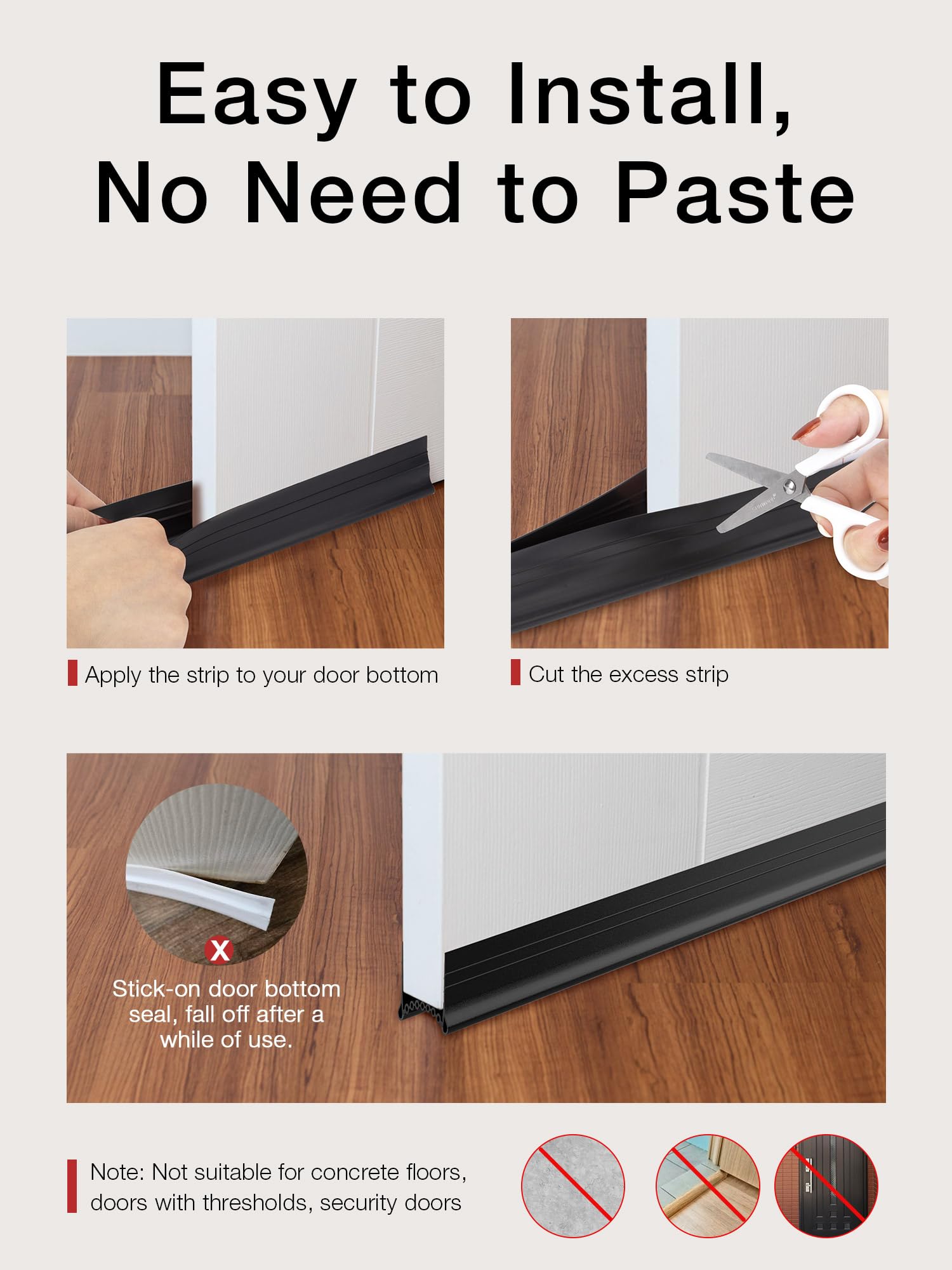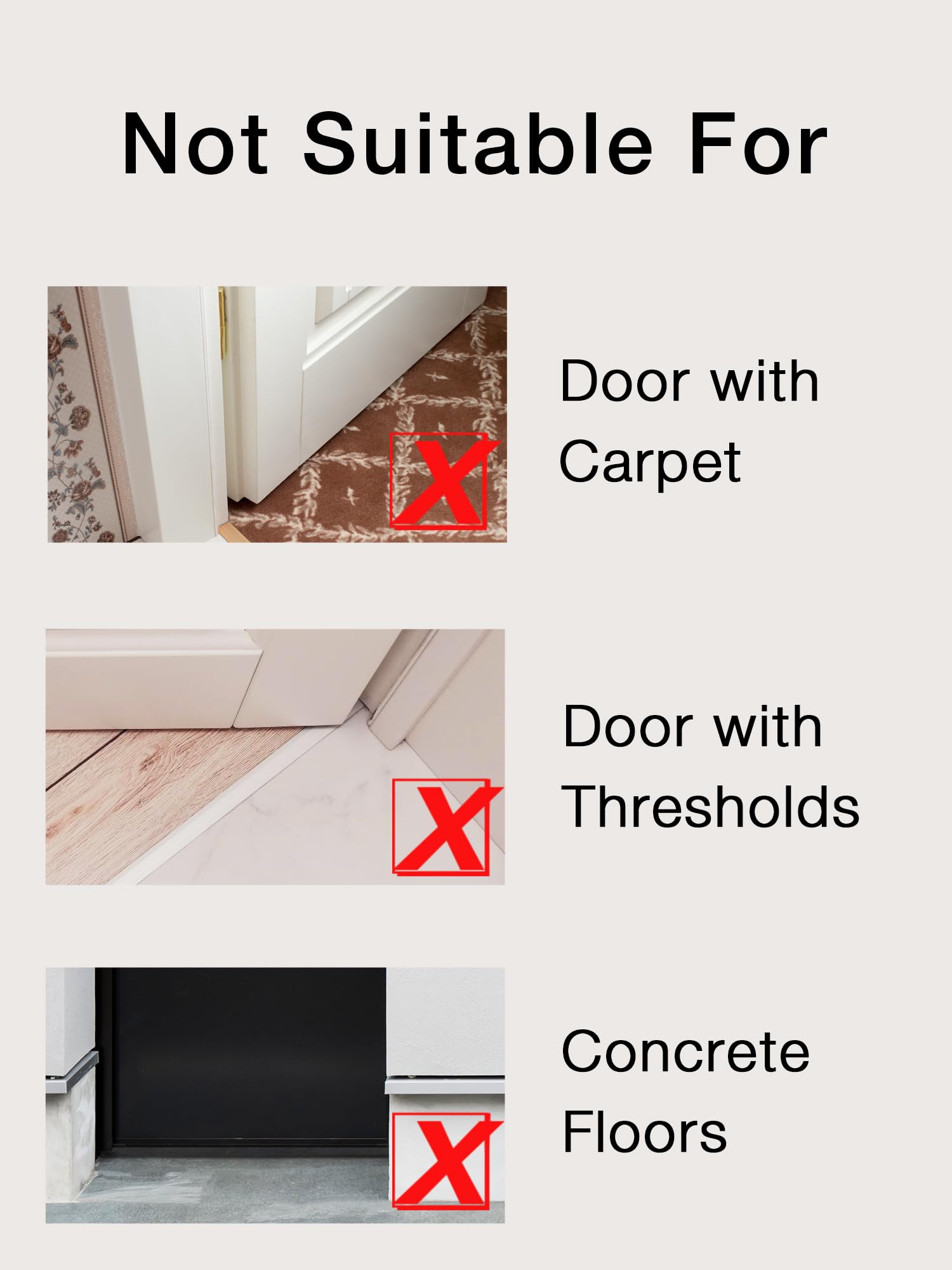 • [Effortless Installation] – No need for adhesive-based. Simply insert the door draft stopper into the bottom of your door, then trim to desired length for a perfect fit. No more worrying about door soundproofing falling off. Note: Not suitable for concrete floors, carpets, doors with thresholds, security doors.